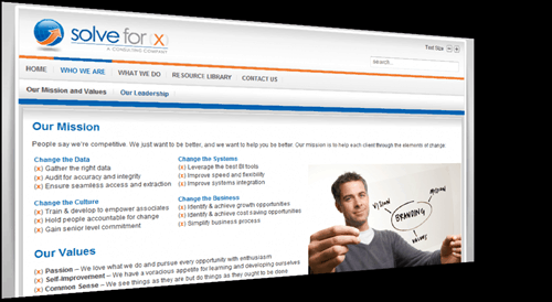 Blast Reac Communications worked closely with Solve for (x) Consulting to develop a clean, corporate website that is easy to update. The site was built on the Joomla! platform which allows the customer to do their own addition and edition of content on the fly.
